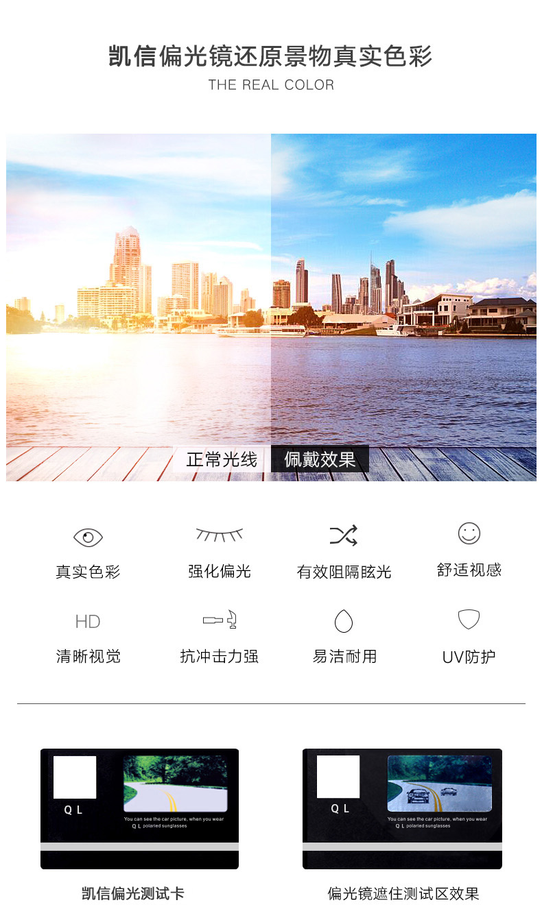 1、抗冲击:独特的POLAROID宝丽来PTX4000镜片能有效抵抗高速冲击,保护眼睛和眼睛区域;2、消除眩光:高质量的POLAROID宝丽来偏光太阳镜能有效阻绝眩光,提升视觉效果和敏锐度;3、防止紫外线:POLAROID宝丽来偏光镜片不仅能有效消除眩光,而且能100%的消除有害的UVA、UVB、UVC、紫外线,全部符合最高的澳大利亚标准,消除400nm以下的紫外线、色彩更自然、更清晰:采用最新高科技PTX4000偏光镜片,以独有高光压弯生产的基本工艺制成,使色彩更清晰、自然;5、改善视觉疲劳:高光压弯技术在镜片压弯过程中提供优良的光学性能和偏光效果,可提供良好的光学表现,让配戴者得眼睛和心情极度放松,改善视觉疲劳。